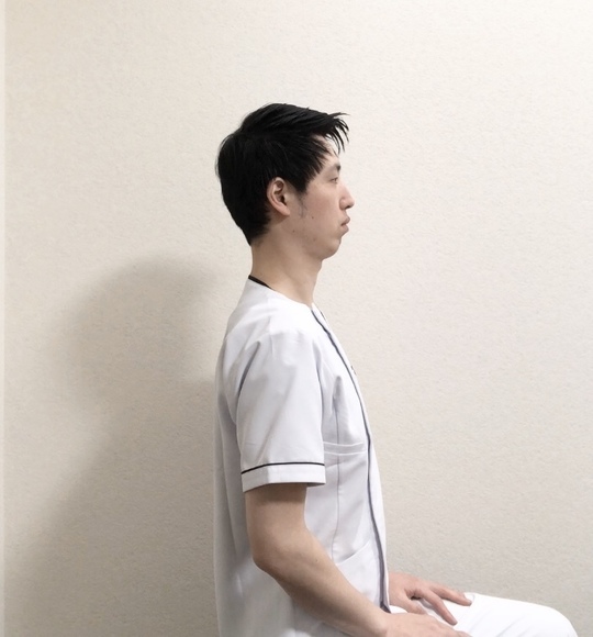 イスに座り背筋を伸ばして姿勢を正します。