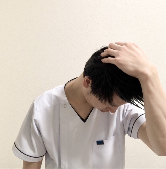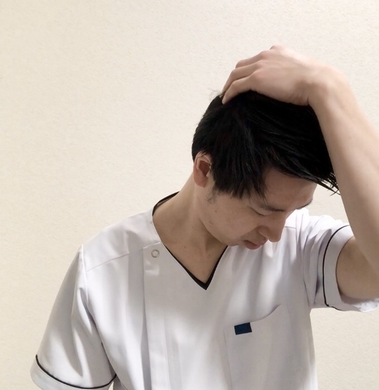 後頭部に左手を添えます。