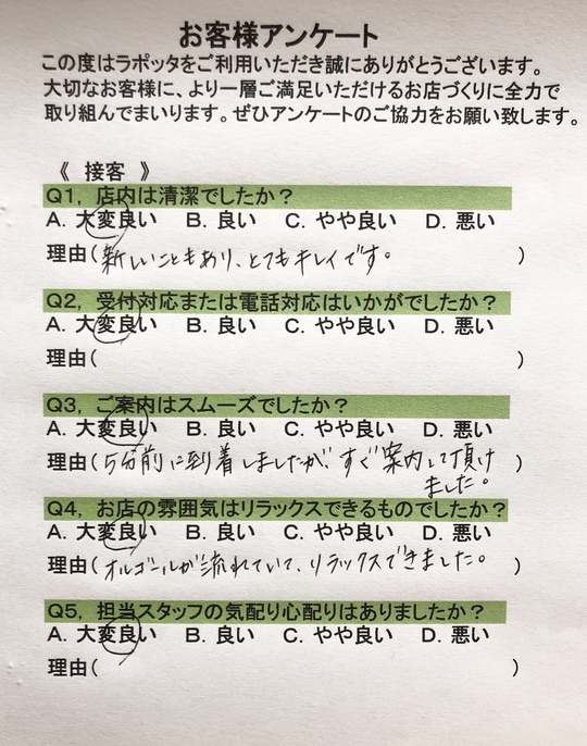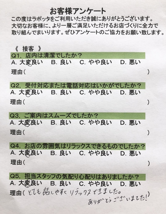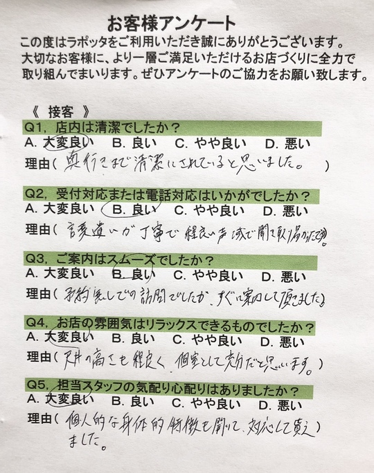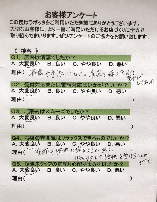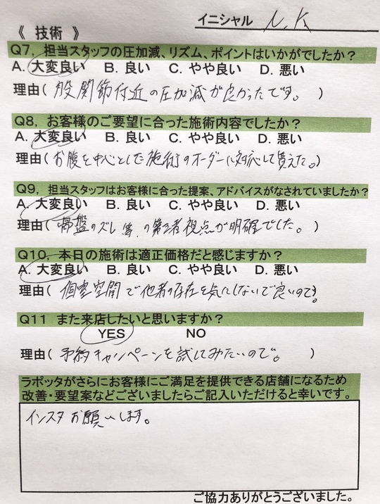当店ならではの、お腹の施術にご満足いただけたようで何よりでございます。現在とても大変な時期ではあると思いますが、一緒に頑張りましょう。私も今度お店の方にお伺いしたいと思っております。