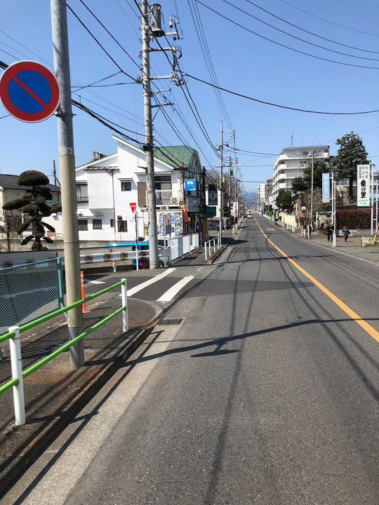 店舗(昭島方面)から拝島方面にすすむと八高線の踏切があります。